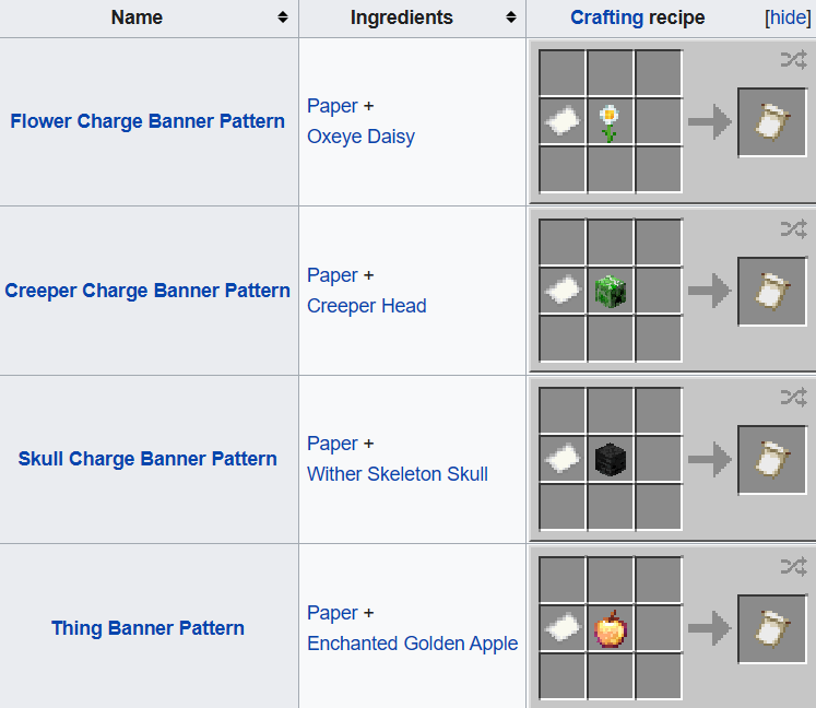 Soweit ich weiß lassen sich alle 4 Banner Pattern auch hier craften