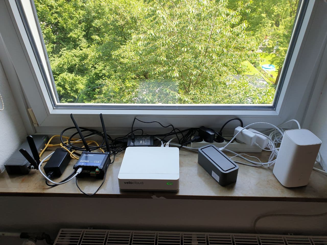 Velocloud, welche per SD-WAN eine Mehrfachpfadoptimierung nutzt und hier 3x 5G Router und 1x LTE Router vereint.