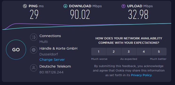 Uff! Im Vergleich dazu nutze ich eine WLAN Verbindung die noch nicht mal den ac Standart erfüllt. Außerdem ist das Internet mitten in der Stadt zwar nicht wetterabhängig, aber seit Corona gerne mal instabil. :doofy: