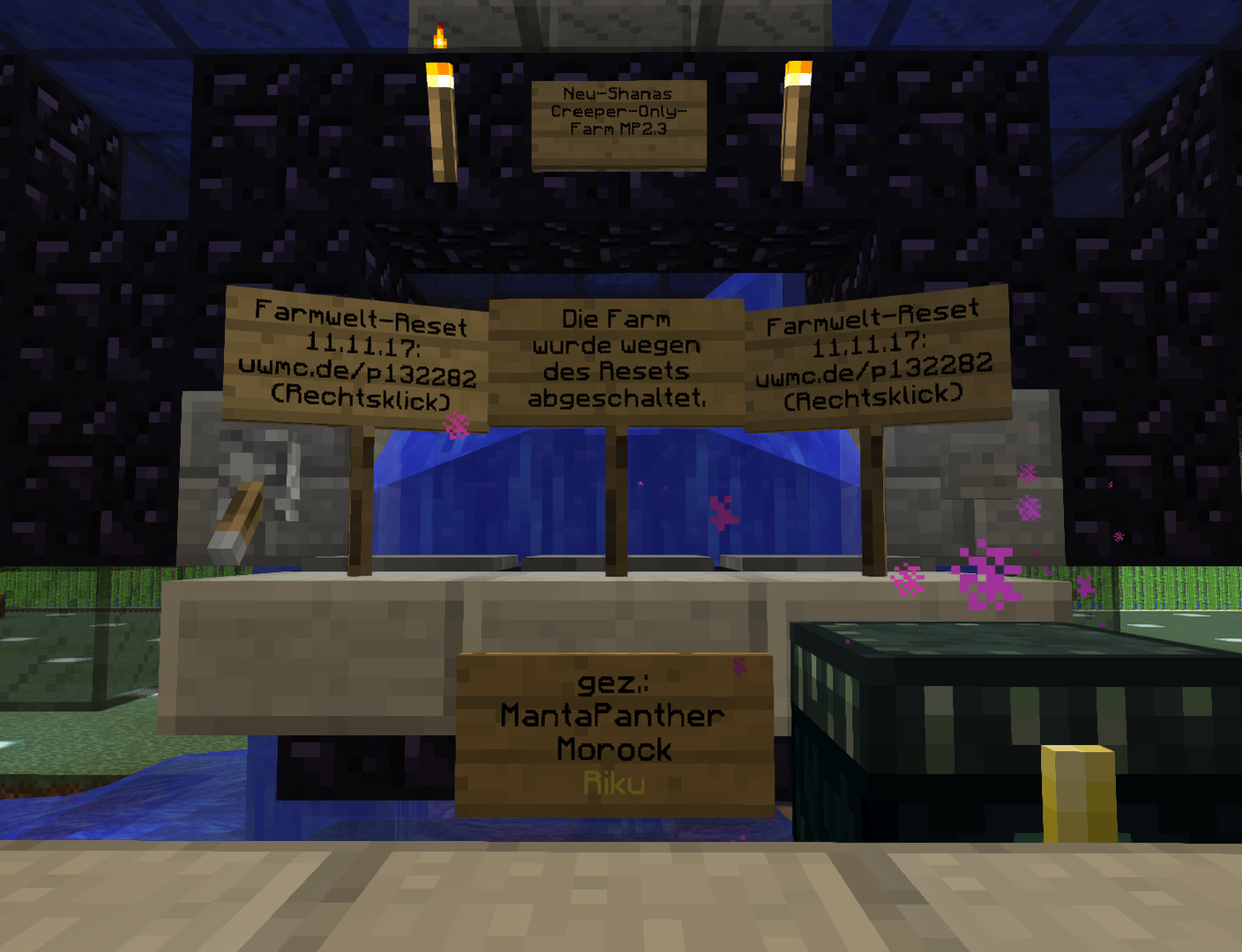Zum Packeis; wir haben lange genug gebraucht um Silk Touch Hacken in der Farmwelt zu bekommen. Soweit ich mich erinnere steht das Packeis dem zur Verfügung, der es als erstes abbaut. Ihr hättet ja jederzeit vorbei kommen und selbst Packeis farmen können. Wir haben uns die Arbeit gemacht nicht bis heute zu warten, alles zu farmen was wir zum abbauen brauchen und damit einen vollkommen legitimen Vorteil gehabt, den jeder andere auch gehabt haben könnte. Genau so haben wir riskiert, dass andere Spieler jederzeit unser Packeis aus den Kisten hätten mitnehmen können.