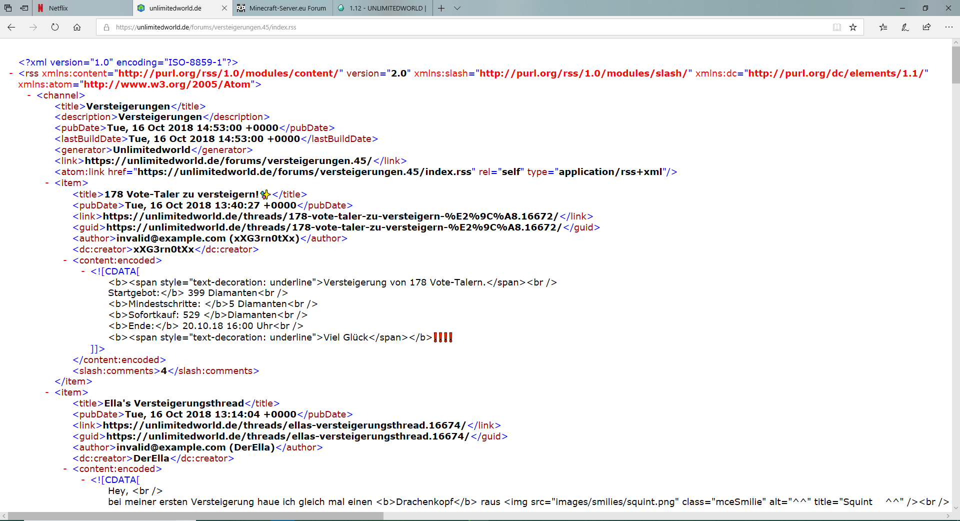 Screenshots vom Server / von Minecraft