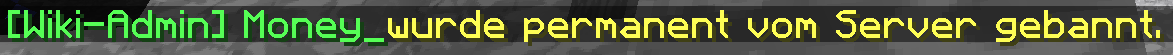 /tellraw @a [{"text":"[Wiki-Admin] Money_","color":"green"},{"text":"wurde permanent vom Server gebannt.","color":"yellow"}]