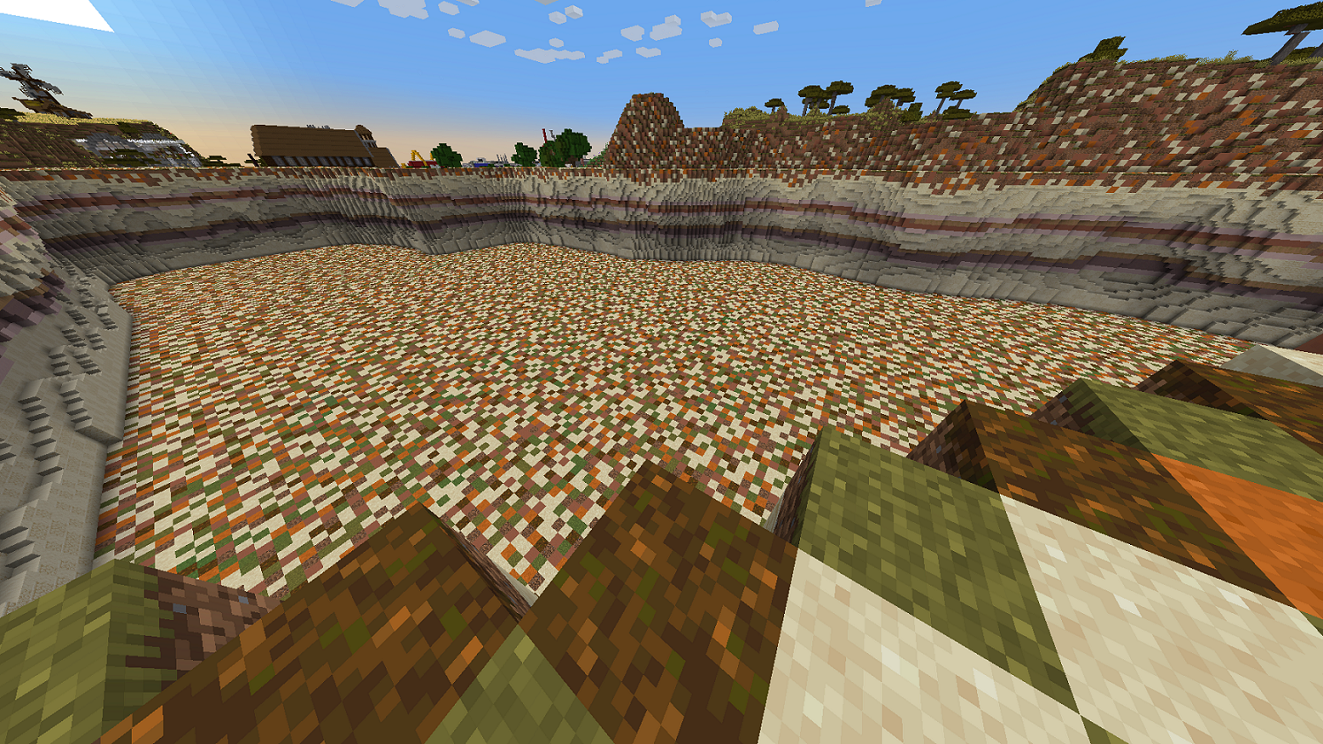 Ich würde vorschlagen, lieber einen oder zwei ähnliche Blöcke (z.B. Sand und Sandstein) als Hauptboden zu verwenden und das dann mit Flecken von Erde, rotem Sand etc. aufzulockern. Gerade sieht es eher nach Worldedit-Blockmix aus :D
